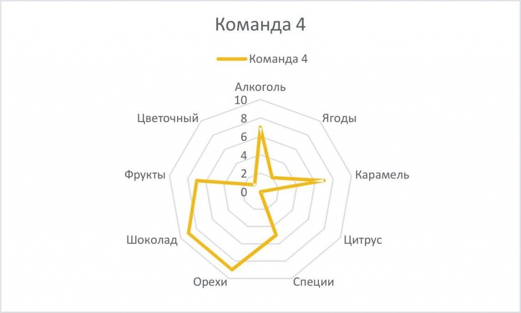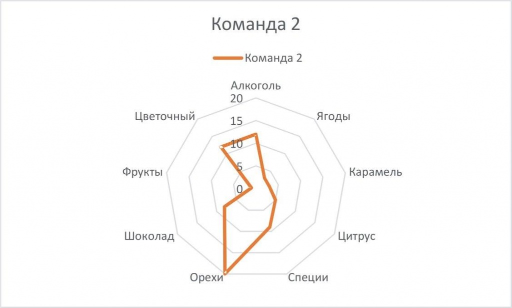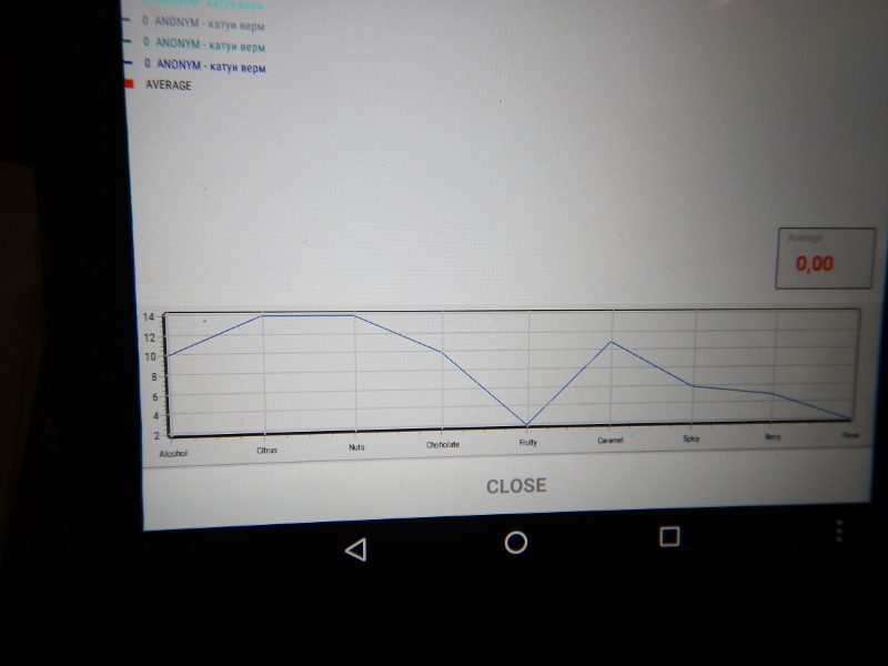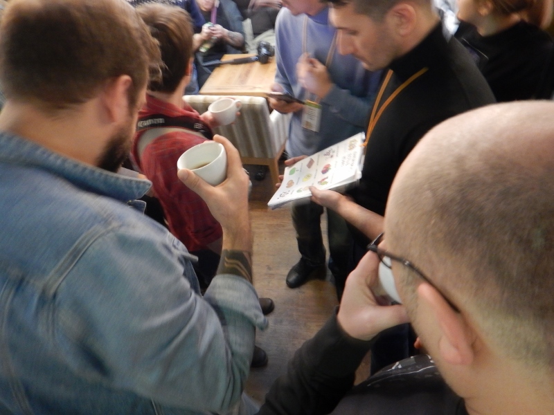 В этот раз совместно с Лукасом мы начали разработку приложения для мобильных устройств, с помощью которого проводили опрос аудитории, которая с 16 до 18:00 была открыта к дегустациям в кофейне «Калипсо». В качестве вкусовых ориентиров мы изобразили всего 9 критериев: цветочный, фруктовый, ягодный, ореховый, шоколадный, специи, алкогольный, цитрусовый, карамельный. В результате мы получили структуру вкуса, как ее видит «средний» потребитель. Очень похожую работу проводят обжарщики, пытаясь на широкой фокус группе проверить дескрипторы прежде чем писать их на пачке кофе.